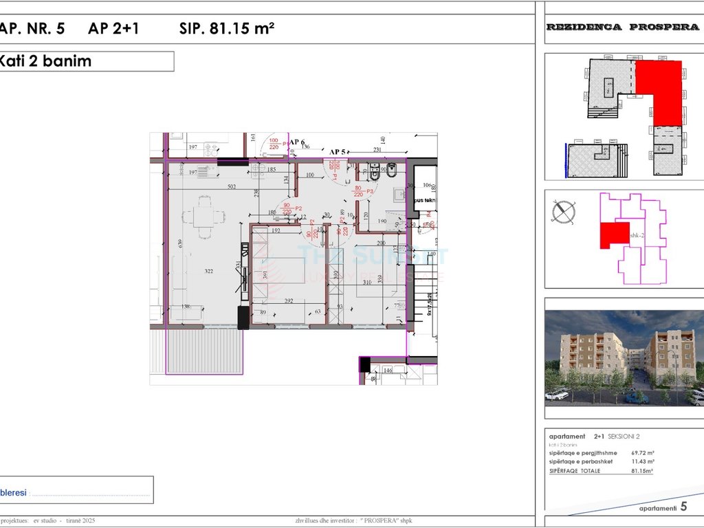 Станот има вкупна површина од 81,15 м² и нето површина од 69,72 м², нудејќи редовен и удобен распоред за семејно живеење. Внатрешната организација вклучува комбиниран дневен престој со кујна, две спални соби, една бања и добро организирани простории кои овозможуваат максимално искористување на секој квадратен метар.